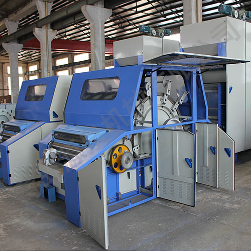 本機主要適用于山羊絨、兔絨、牦牛絨、蠶絲、化纖等散纖維,適紡纖維長(cháng)度為16-80mm。將電子稱(chēng)重喂毛機均勻送來(lái)的纖維層進(jìn)行開(kāi)松和梳理,使所有呈卷曲,塊狀的纖維理成基本伸直的單纖維狀態(tài),后經(jīng)剝網(wǎng)圈條供后道工序使用。