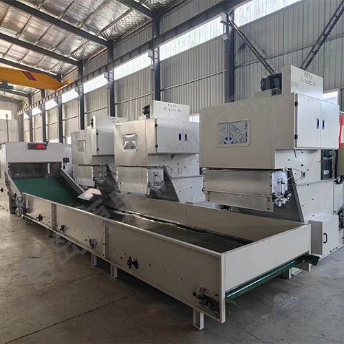 該機器主要用于開(kāi)松各種等級捆包纖維,且能夠定量喂入。多臺復合使用可按比例混合不同纖維。采用自動(dòng)控制,調節范圍大,使不同纖維配比準確,混合均勻,使用新式電子稱(chēng)重結構,更加節省人工。